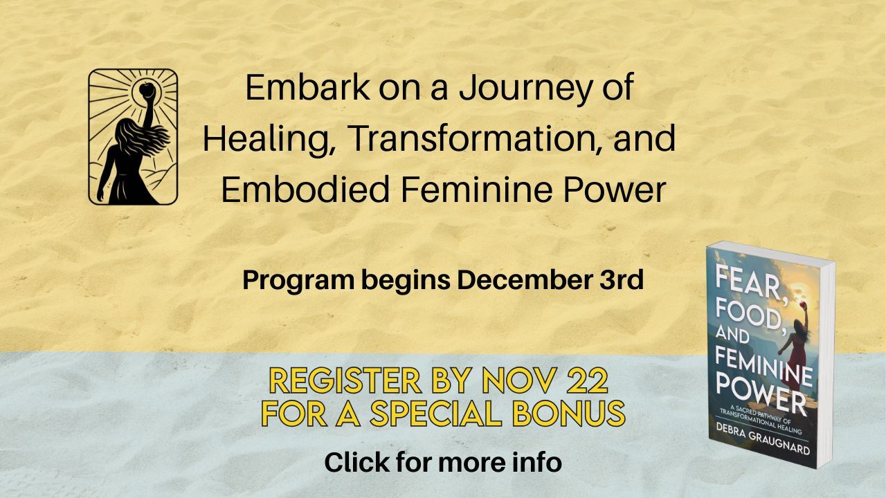 If you wrestle with feeling unsafe, self-soothe with food, and yearn to live in your sacred feminine power, click here.